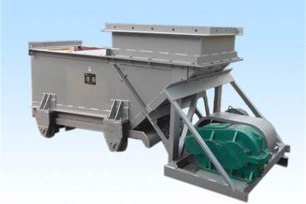 往复式给煤机系由机架,底板(给煤槽),传动平台等组成,漏斗闸门,托滚组成。 其工作时,电动机开动后经弹性联轴器,减速机,曲柄连杆机构托动倾斜5°的底板在托滚上作直线往复式运动,将煤均匀的卸载到运输机或其他筛选设备上。
