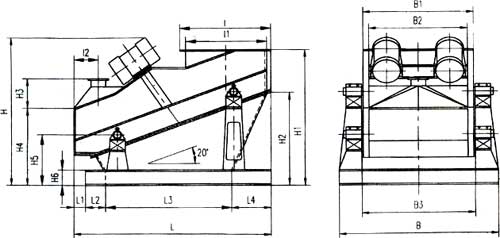 (1)ZSG系列单层筛外形及安装尺寸。注:下图为封闭式振动筛,敞开式无进料口、除尘口,亦无I、I1、I2、H3之尺寸。