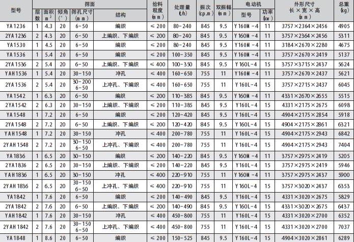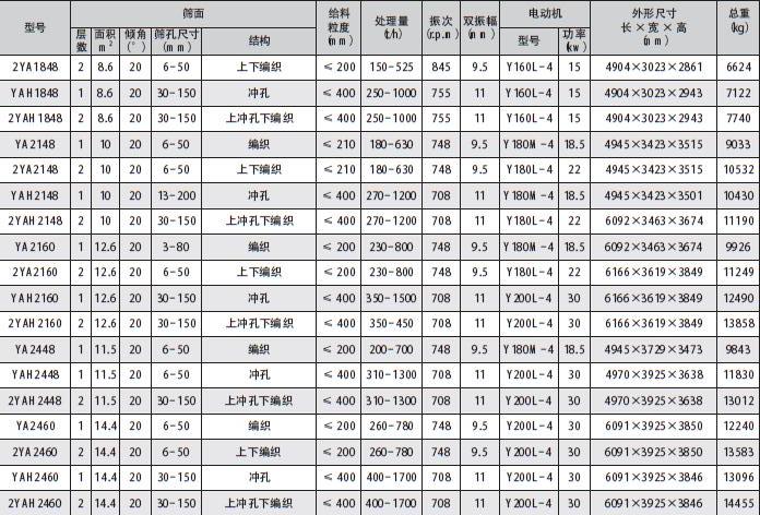 YA型圆振动筛运点轨迹为圆,可广泛应用于选煤选矿、砂石、建材、煤炭等行业作为分级物料的通用设备。YA型圆振动筛结构类型